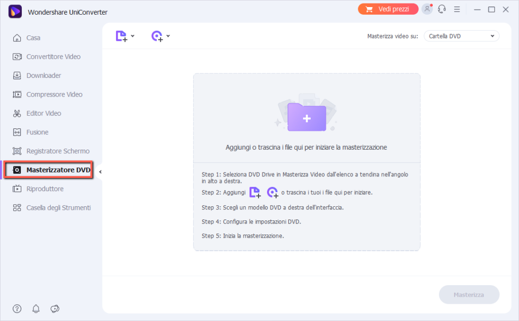 Infine clicca su “Masterizza” in basso a destra per avviare la creazione del tuo DVD.